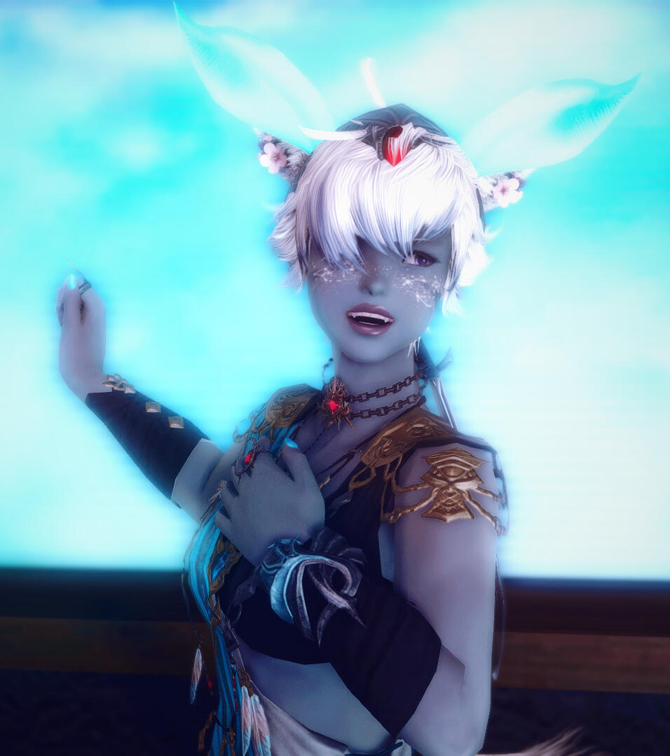 Little Au'ra that likes to think she's quirky but is straight up weird. Shy but friendly, has a tendency to forget to answer messages. Is working on it.Likes