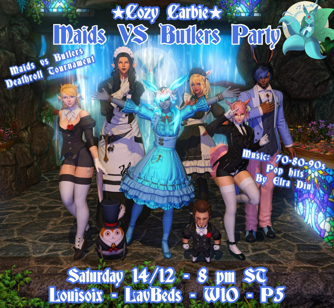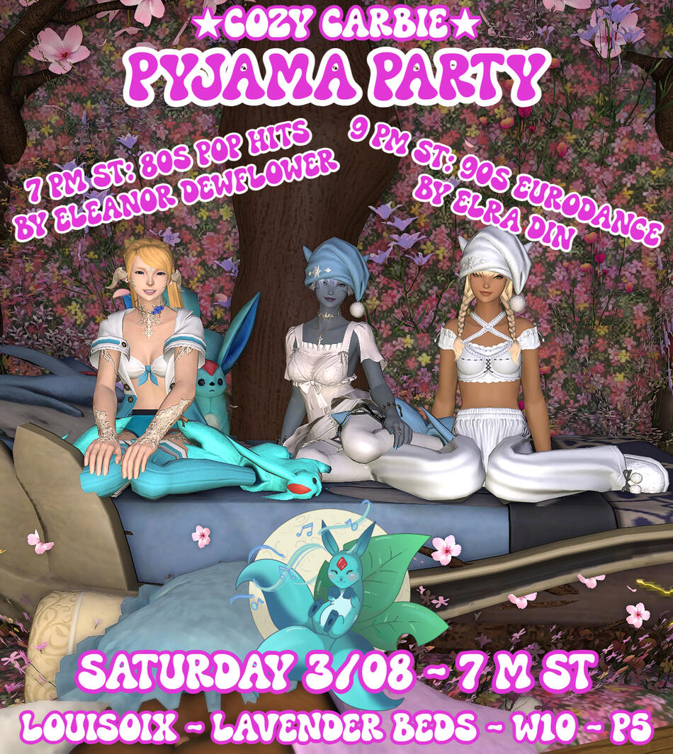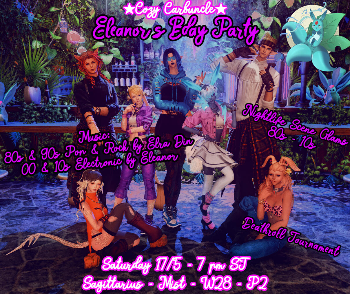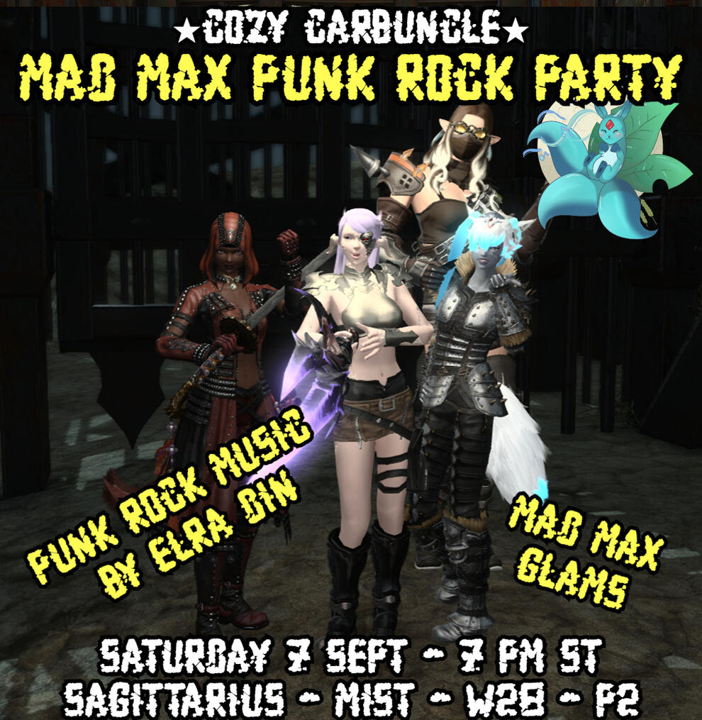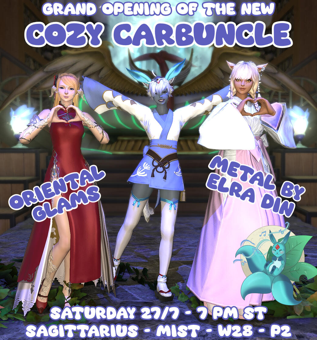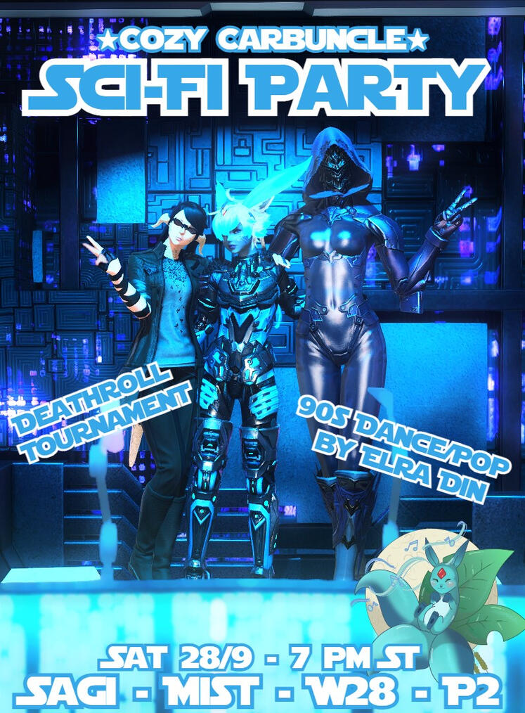 We welcome you with a social /say chat alternating our 4 cozy SFW venues the Cozy Carbie, the Cozy Forest, Cozy Carbuncle and Cozy Carby! Every Saturday at 21 CET with music by Elra Din ranging from popular Rock to Dance hits.With a smol preparty in the garden starting around 30 mins beforehand for the early birds and an Ending Ritual each party!