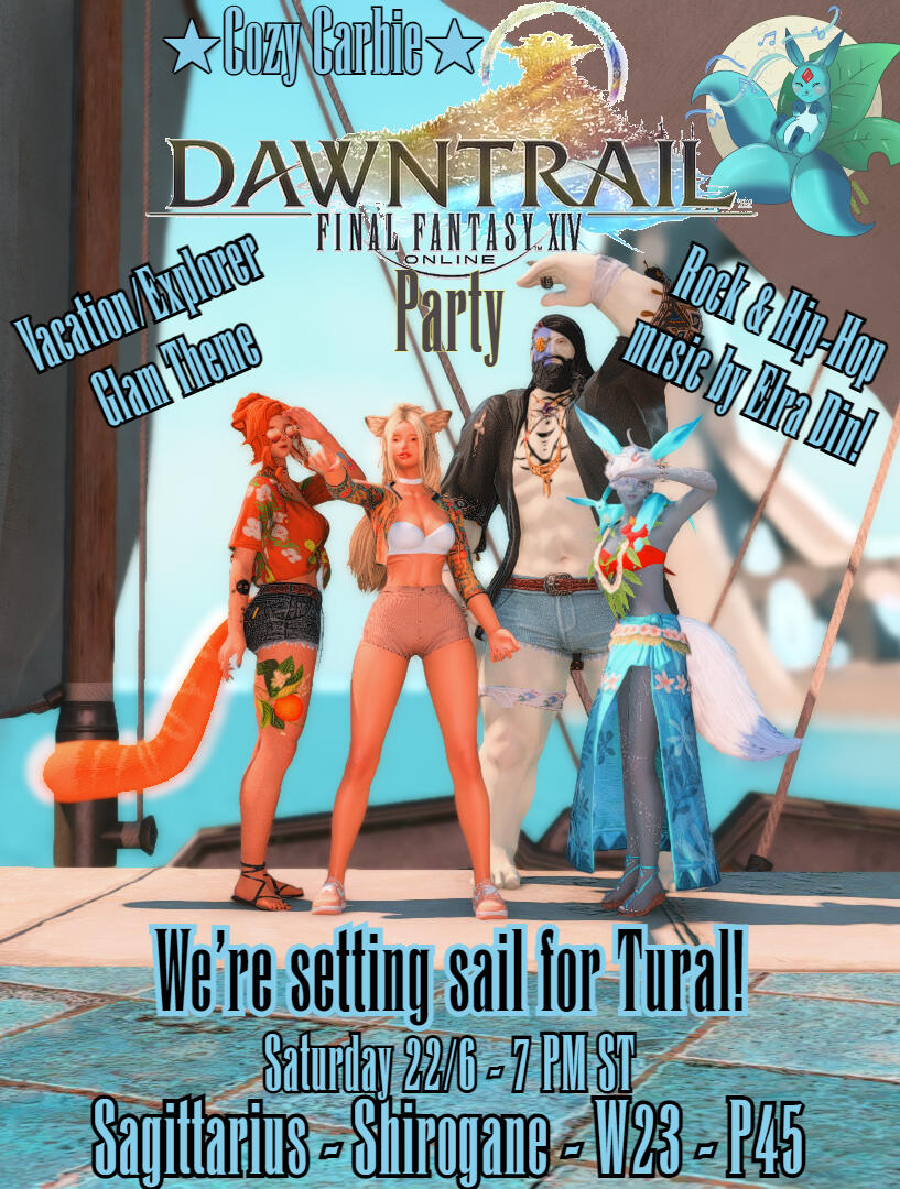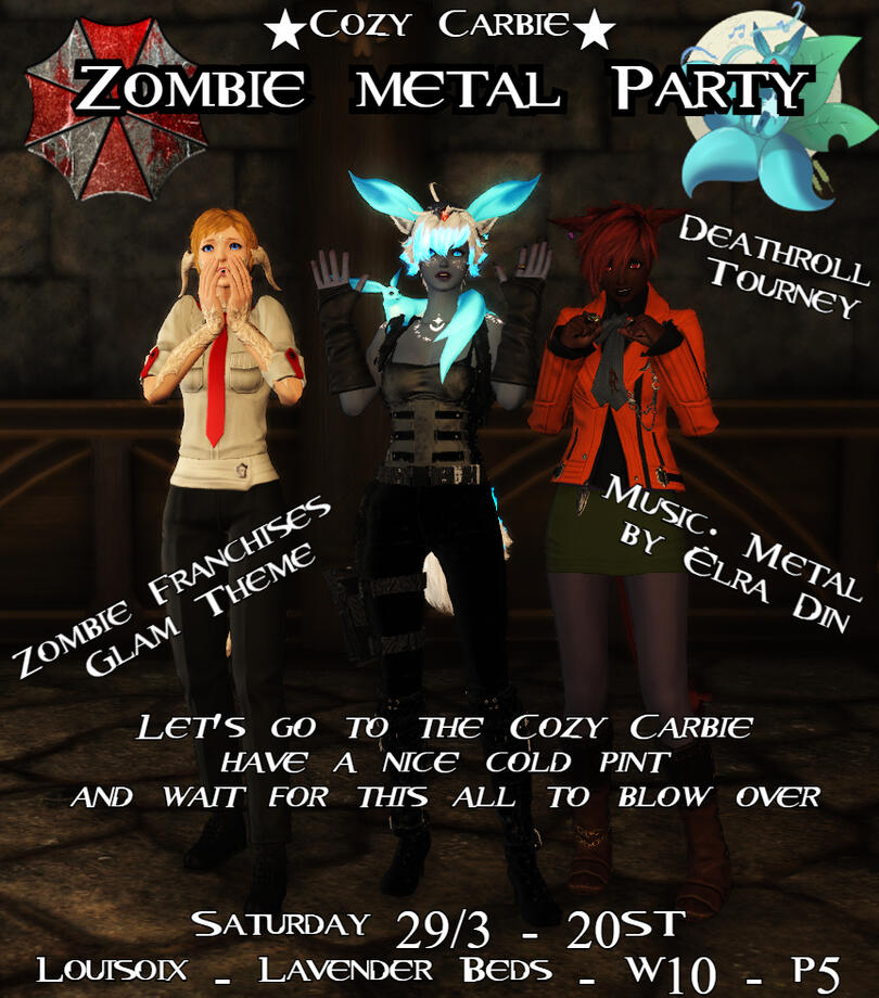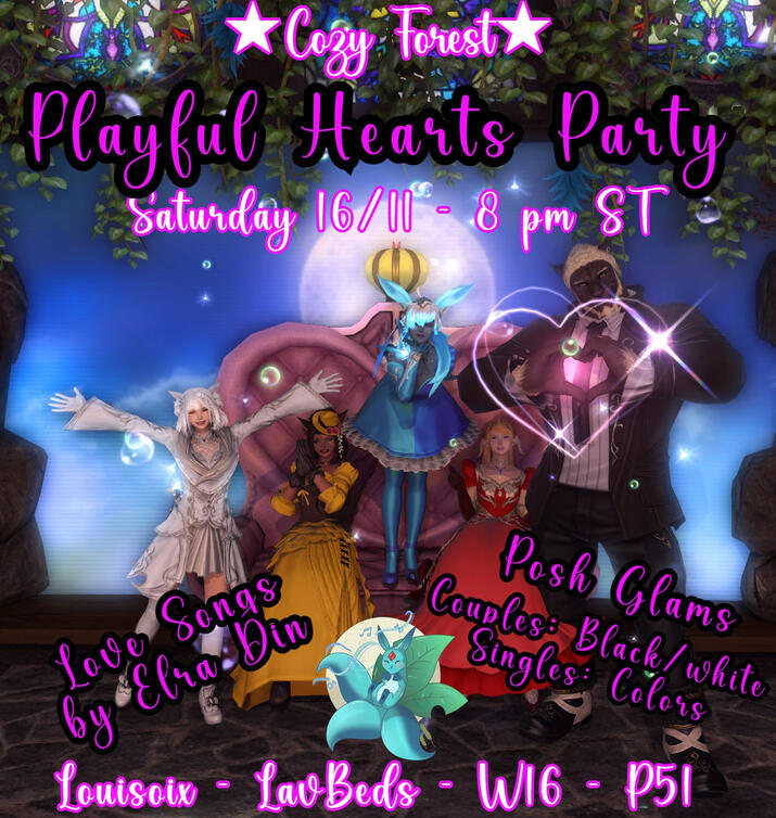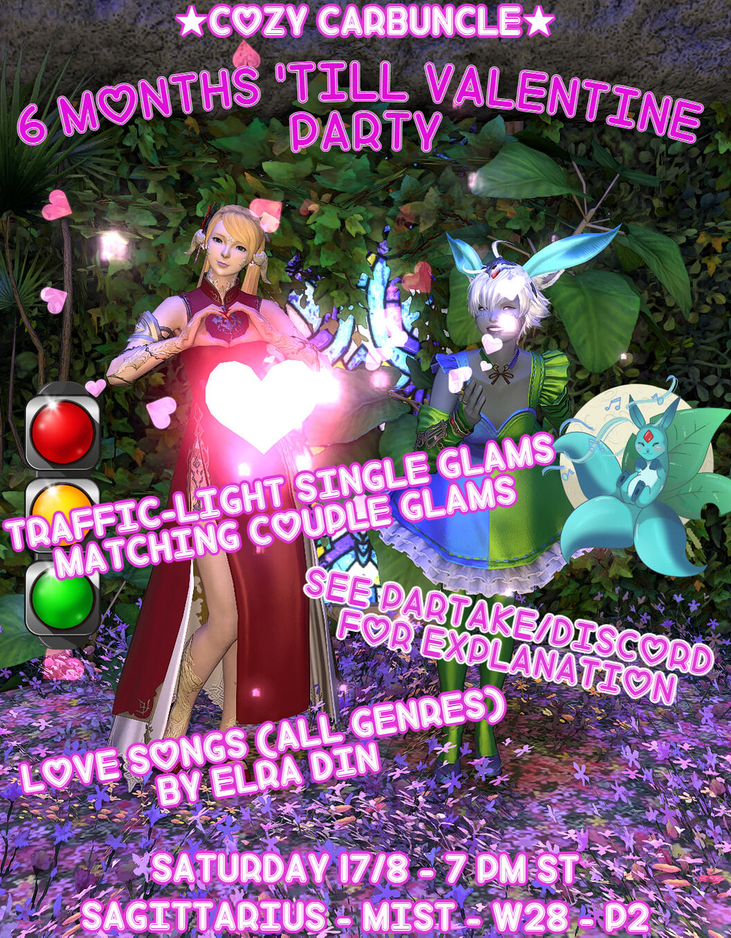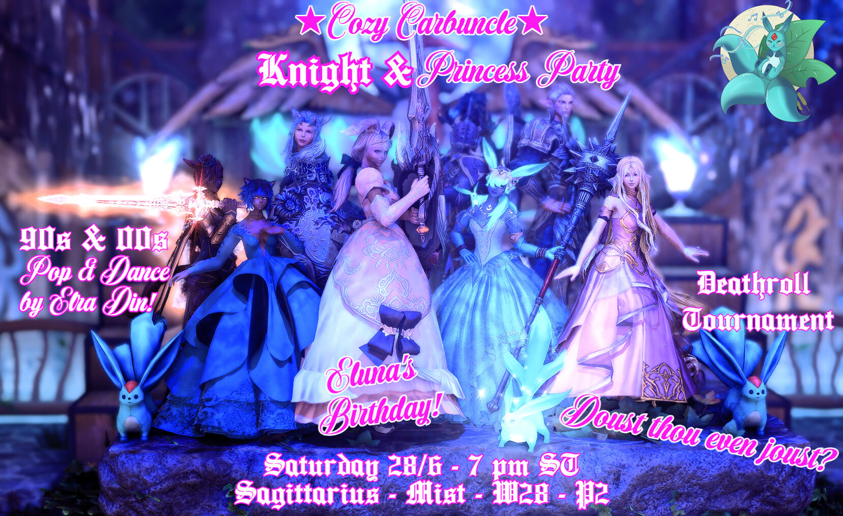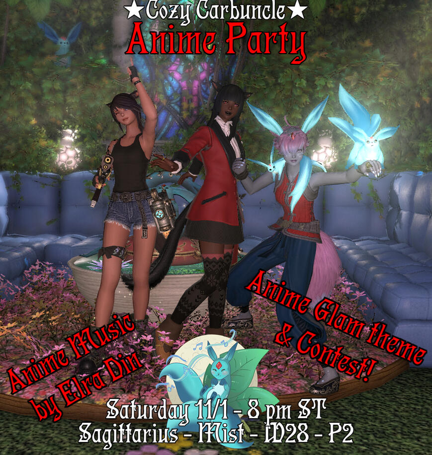 We welcome you with a social /say chat alternating our 4 cozy SFW venues the Cozy Carbie, the Cozy Forest, Cozy Carbuncle and Cozy Carby! Every Saturday at 21 CET with music by Elra Din ranging from popular Rock to Dance hits.With a smol preparty in the garden starting around 30 mins beforehand for the early birds and an Ending Ritual each party!